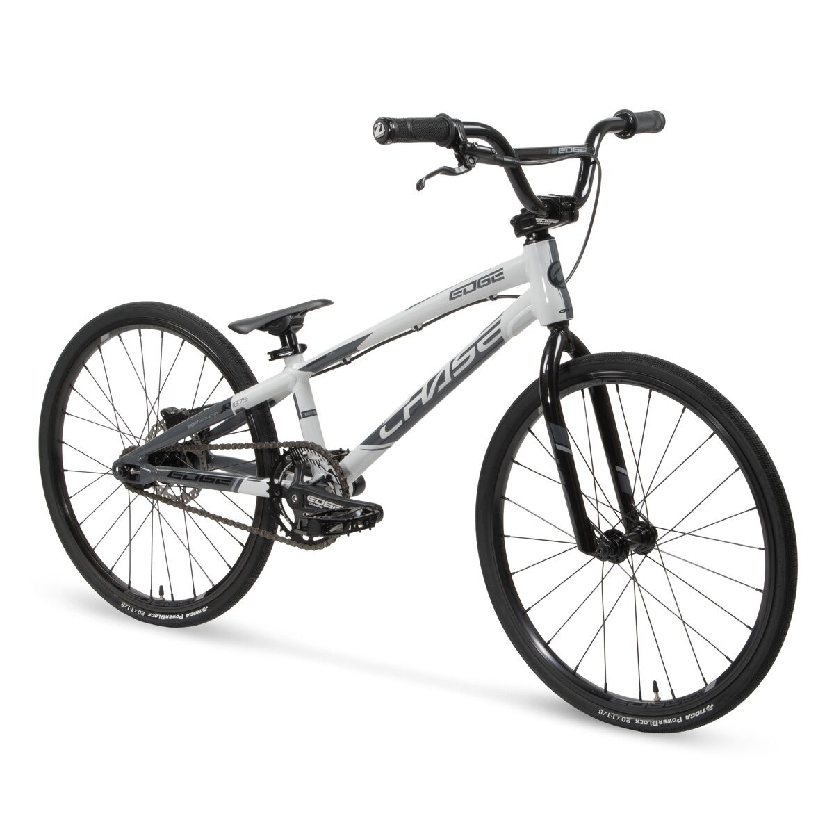 Just when you didn't think it was possible, the new Edge has been improved, as now it is equipped with Shimano Hydraulic disc brakes (Junior size & above), all new Chase 24mm 2 piece Alloy Cranks (Expert XL & Above) , updated gearing and crank sizes, a 2 tone paint and graphics design, and an closed rear dropout system with integrated chain tensioner system,. The Edge frame also features hydroformed, triple butted, 6061 aluminum tubes with an integrated head tube. Other featured parts on the Edge include 4130 chromoly fork and handlebars, double wall rims with triple engagement rear cassette rear hub, and TIOGA tires. The combination of all these components arguably makes the CHASE Edge one of the most advanced race BMX bikes available today.